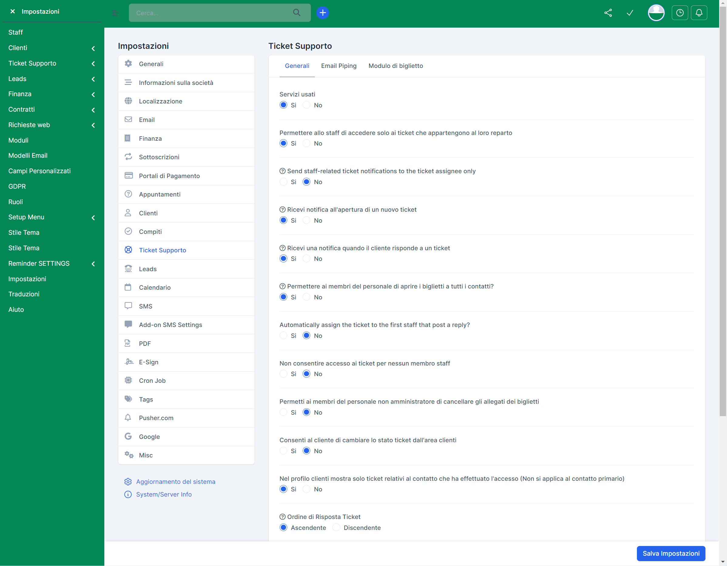Dopo aver configurato le opzioni desiderate, è essenziale salvare le impostazioni cliccando sul pulsante "Salva Impostazioni". Una gestione accurata delle impostazioni del ticket di supporto assicura una comunicazione chiara e un'effic